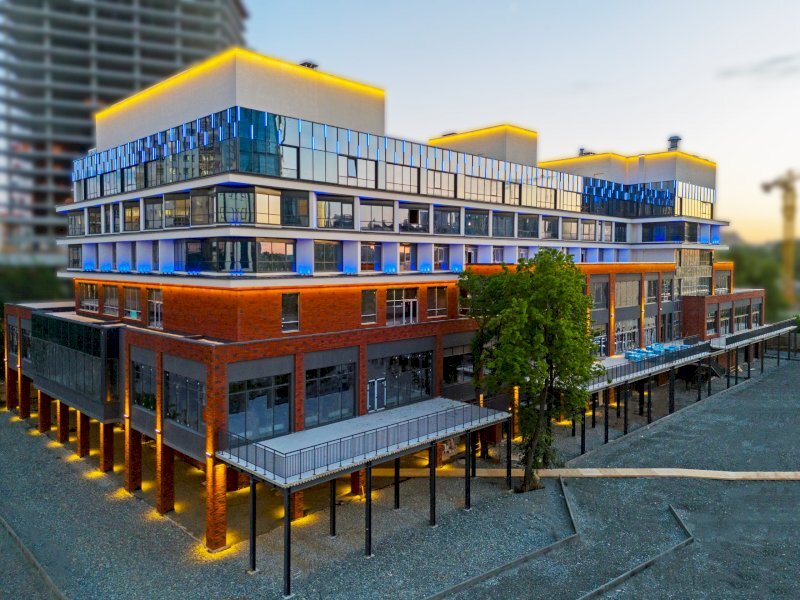 Верхние этажи займут офисы в формате work-life balance. Здесь расположатся дизайнерские холлы с лаунж-зонами, живыми растениями и отдельными переговорными комнатами, будут действовать шесть лифтов с панорамным остеклением. Внизу предусмотрен подземный двухуровневый паркинг, где гости могут припарковать свои автомобили.