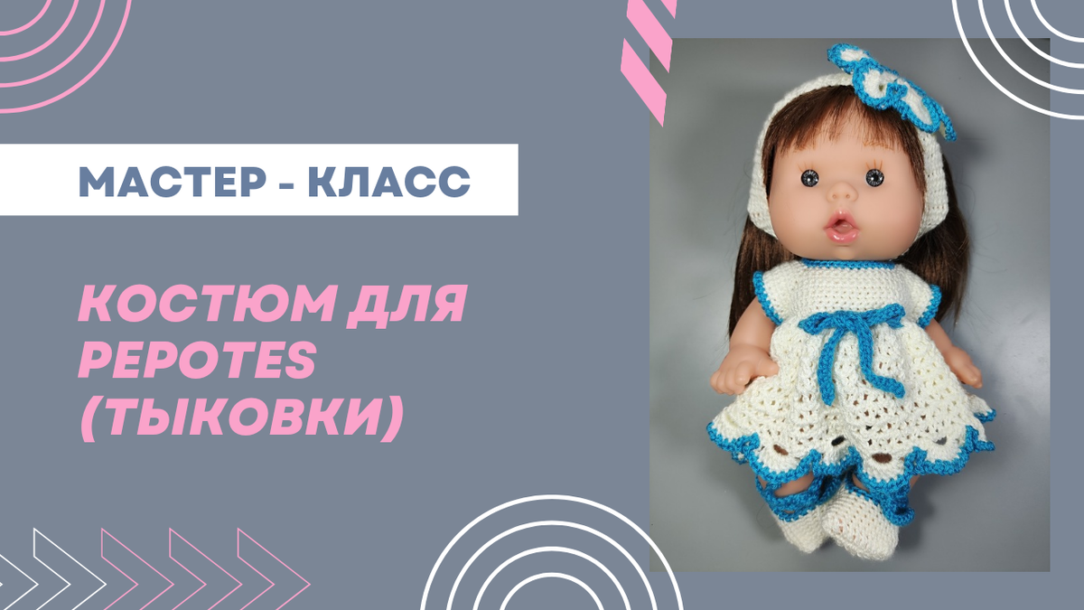 Сняла обещанный мастер - класс для Тыковки (26 см). Повязку можно связать любой кукле