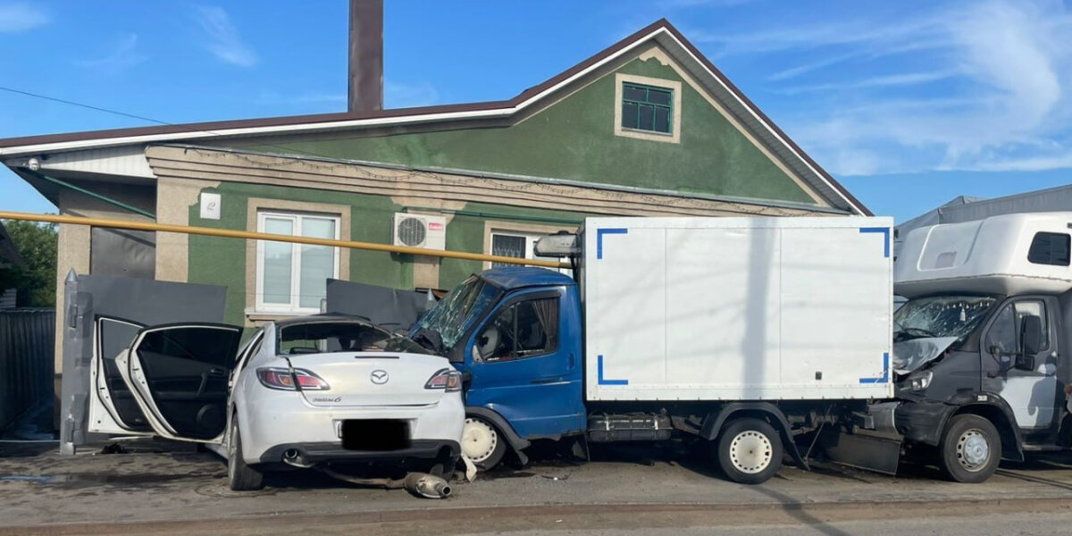 Воронежец на Mazda 6 протаранил два стоящих фургона и отправился в больницу