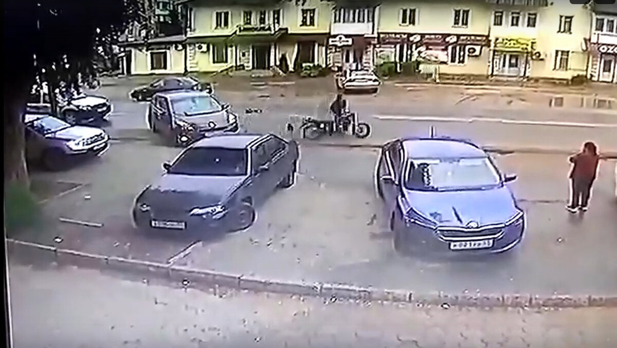 Это ДТП произошло на Ленинградском шоссе. Сначала мотоциклист при попытке объехать паркующуюся машину врезался в минифургон. Мужчина просто покатился кубарем, но тут же встал и стал убирать байк с дороги. Ну, а далее и случился эпичный побег... Официальной информации об этом ДТП нет, так как никто в ГАИ Ржева по поводу этого происшествия не обращался. О состоянии самого мотоциклиста также пока не известно. Видео из группы AUTOMANIA_69.