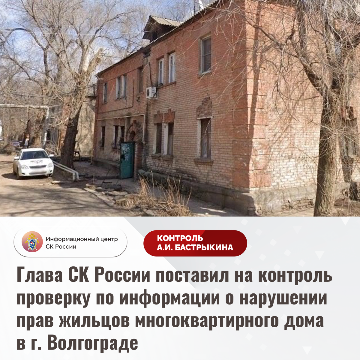 Председатель Следственного комитета Российской Федерации Александр Иванович Бастрыкин поставил ход процессуальной проверки на контроль в центральном аппарате ведомства и поручил руководителю СУ СК России по Волгоградской области Василию Ивановичу Семенову доложить о промежуточных результатах процессуальной проверки и принятом по итог