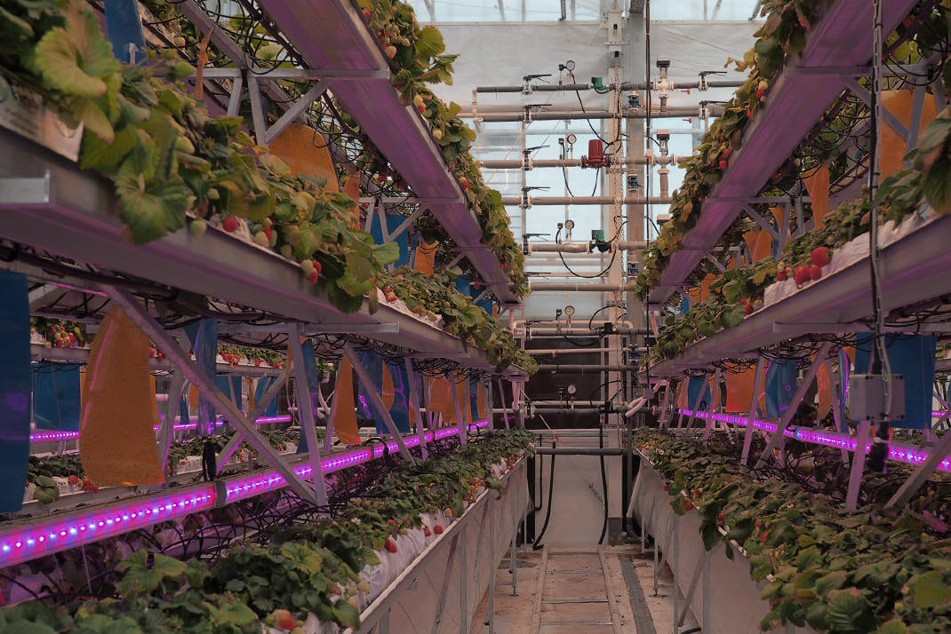 В городе Малоярославце Калужской области компания «Агрисовгаз» построила экспериментальную теплицу пятого поколения по выращиванию садовой земляники. Теплица оснащена многоярусной лотковой системой для выращивания, системами вентиляции, отопления, полива, дренажа и дезинфекции растений. Для круглогодичного выращивания ягод в любых климатических условиях и достижения высокой урожайности применена разработанная компанией технология - энергосберегающая адиабатическая система охлаждения воздуха (испарительным методом). Система облучения для выращивания ягод – двухуровневая. В дополнение к смонтированным на потолочных шинах лампам, на каждом уровне тепличных конструкций организована система досвечивания. Для создания такой системы использованы специальные линейные светодиодные фитооблучатели разработки и производства МСК «БЛ ГРУПП» - GALAD GL Twin Fito GEN2. Они не только повышают урожайность, но и обеспечивают сбережение энергоресурсов. В новой теплице смонтировано более 20 таких приборов