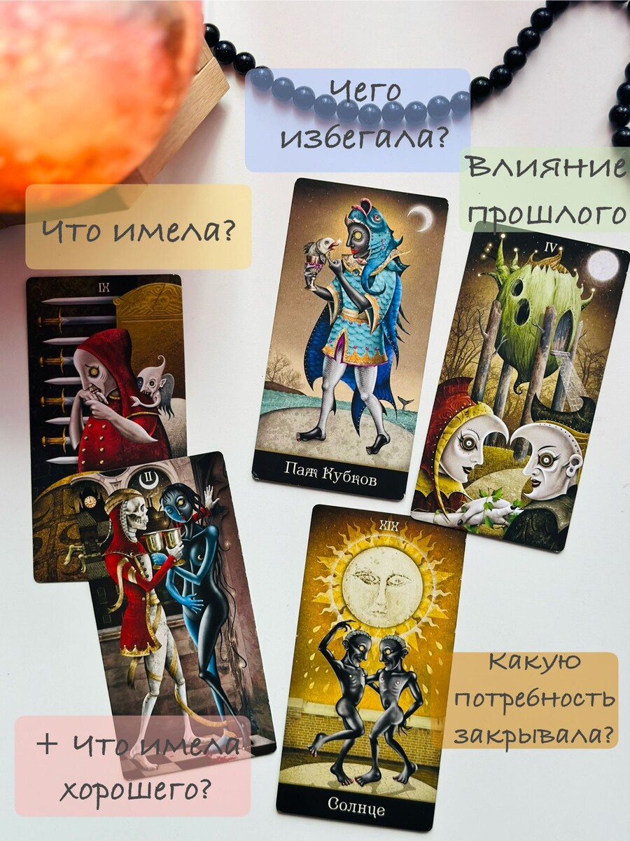 Расклад я сделала на специфичной колоде «Безумная луна» (Deviant Moon Tarot), которая более глубоко «заглядывает» в различные проблемы и помогает вынести на поверхность то, что скрыто от нас.