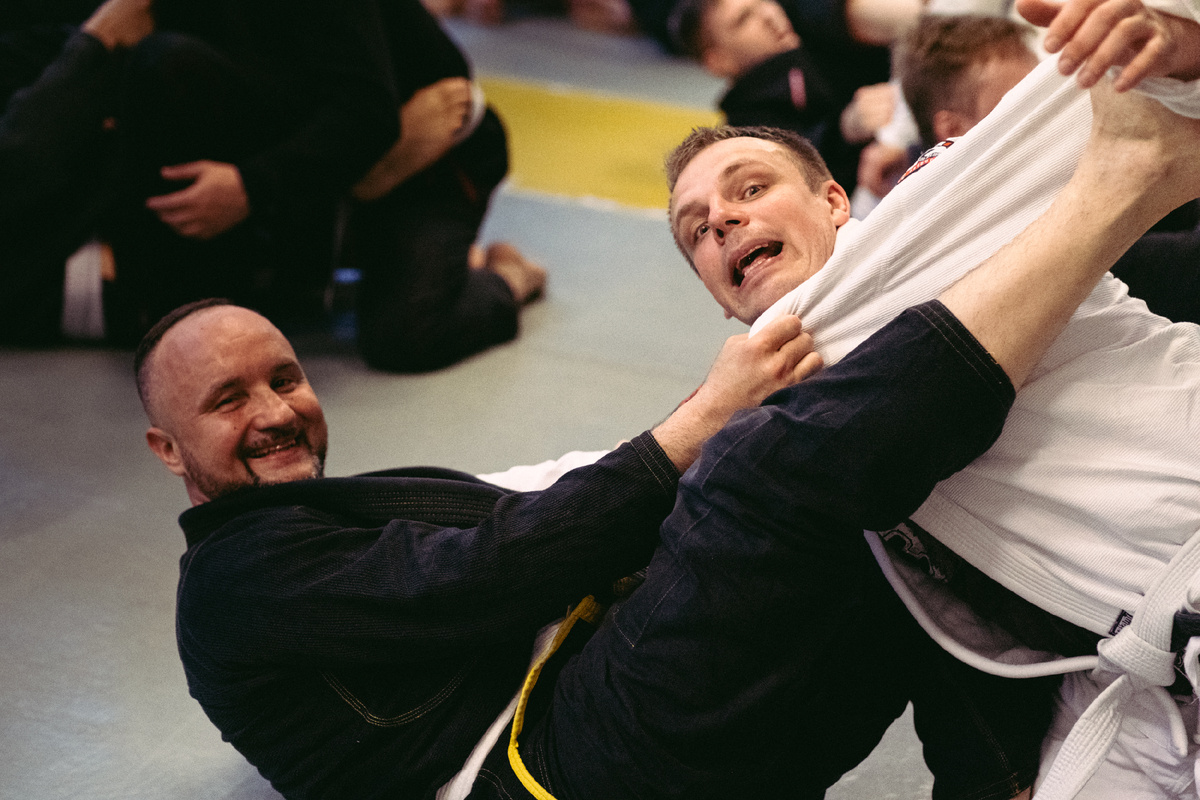 В джиу-джитсу крутят руки, и ломают ноги мне, Там кричат о пользе спорта, так обиднее вдвойне Вот выходит на татами жёсткий страшный бородач, Он настроен по-серьёзке, закрутить меня в калач Начал он с прохода в ноги, пулил гард и в маунт сел От такой ребята жести, я признаться обалдел, Я привык, что всё по кайфу, жизнь всегда лицом ко мне, Напрягаться не привык ведь, на ментальном на коне; Мне пришлось в момент проснуться и стряхнуть сопа с себя, Не успел блин увернуться, сберимболили меня И уставший, я в удушку с треугольника попал, а парняга словно Грейси додавил и разломал. Мне печально, я ведь тапнул, не хотел бороться я, Но, теперь я точно знаю, драки тема не моя Толи дело на татами придушить, иль поломать, После трены в нашем додзе начинаешь оживать!)