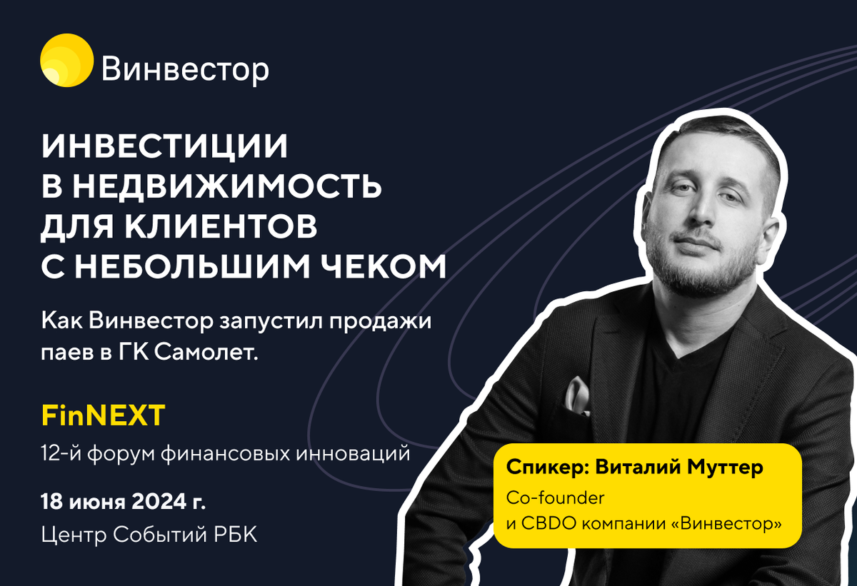 🔊18 июня в Центре Событий РБК (Москва, Космодамианская наб., 52, стр. 7) пройдет форум финансовых инноваций FinNEXT. Эксперты рынка поговорят о приоритетах развития российского финтеха в 2024-2025 годах. 🚀На форуме будут представлены кейсы, решения и инсайты лидеров финансовой отрасли. В числе спикеров представители ПСБ, Газпромбанка, Альфа-Банка, Сбера, Росбанка, Ozon Fintech, Винвестора и других игроков. ⭐️ Co-founder и CBDO нашей компании Виталий Муттер выступит в четвертой сессии «Экосистемы и партнерства с финансовым подтекстом» и расскажет про запуск масштабного проекта с топ-1 девелопером России по объему текущего строительства жилья. Виталий поделится кейсом, как мы запустили инфраструктуру для инвестиций в ЗПИФы на объекты недвижимости компании «Самолет», реализовав проект «от первого ТЗ до релиза» за 2 месяца. 🤝На площадке форума будет работать стенд «Винвестора», будем рады встрече и нетворкингу. 👋До встречи! #винвестор #finnext #fintech #виталиймуттер