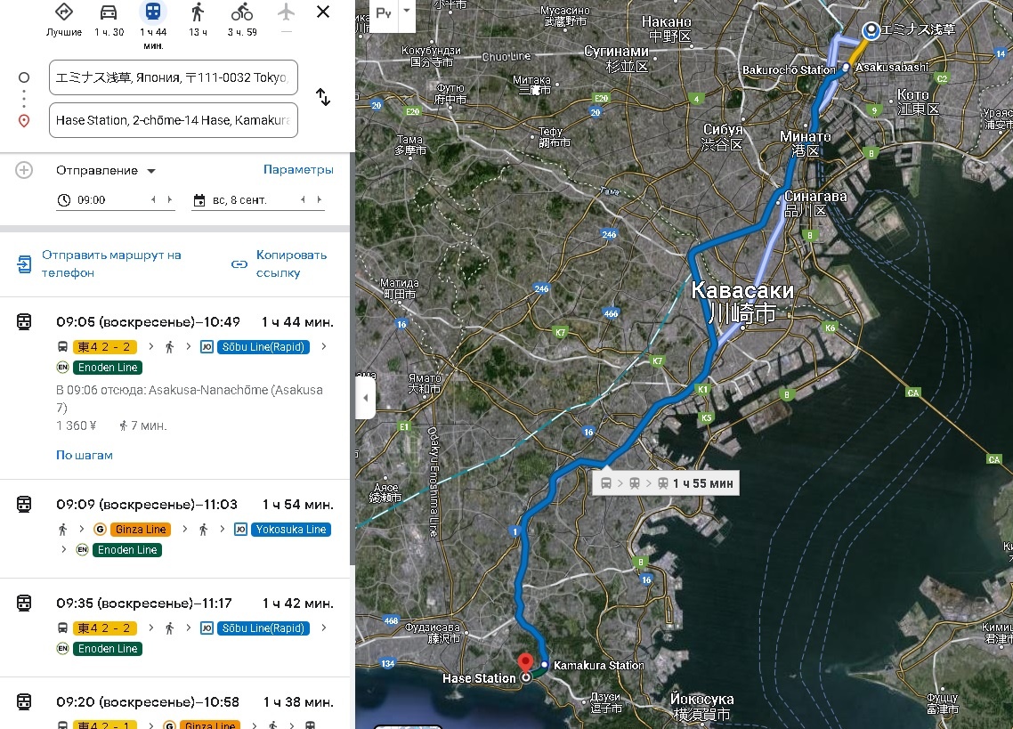 Оттуда можно пешком до Эносимы через Хаседеру, Goryo Shrine и Большого Будду.