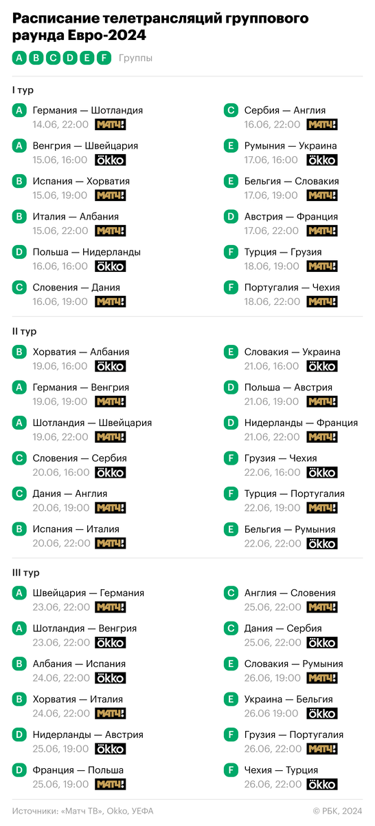 В России транслировать матчи предстоящего чемпионата Европы будут телеканал «Матч ТВ» и стриминговый сервис Okko.