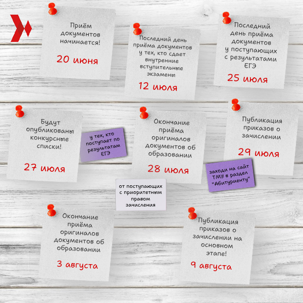 С 20 июня заявление можно подать, не дожидаясь получения результатов ЕГЭ. 25 июля – последний день приёма документов у тех, кто поступает по результатам Единого государственного экзамена. У тех, кто предполагает поступать по внутренним вступительным испытаниям университета, документы будут принимать до 12 июля. В Тюменском медицинском университете можно получить четыре специальности высшего образования (специалитет): «Лечебное дело», «Педиатрия», «Стоматология», «Фармация». По программе бакалавриата вуз обучает специалистов по направлению «Сестринское дело».
