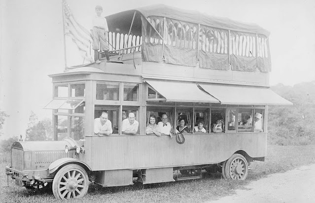 В 1915 году был усовершенствован первый прототип автодома. Онстал известен как "Цыганский фургон", хотя конечно на настоящий цыганский походил только наличием "кибитки" на крыше автобуса ))). Цыганский фургон был искусно спроектирован Роландом Конклином и изготовлен по инд