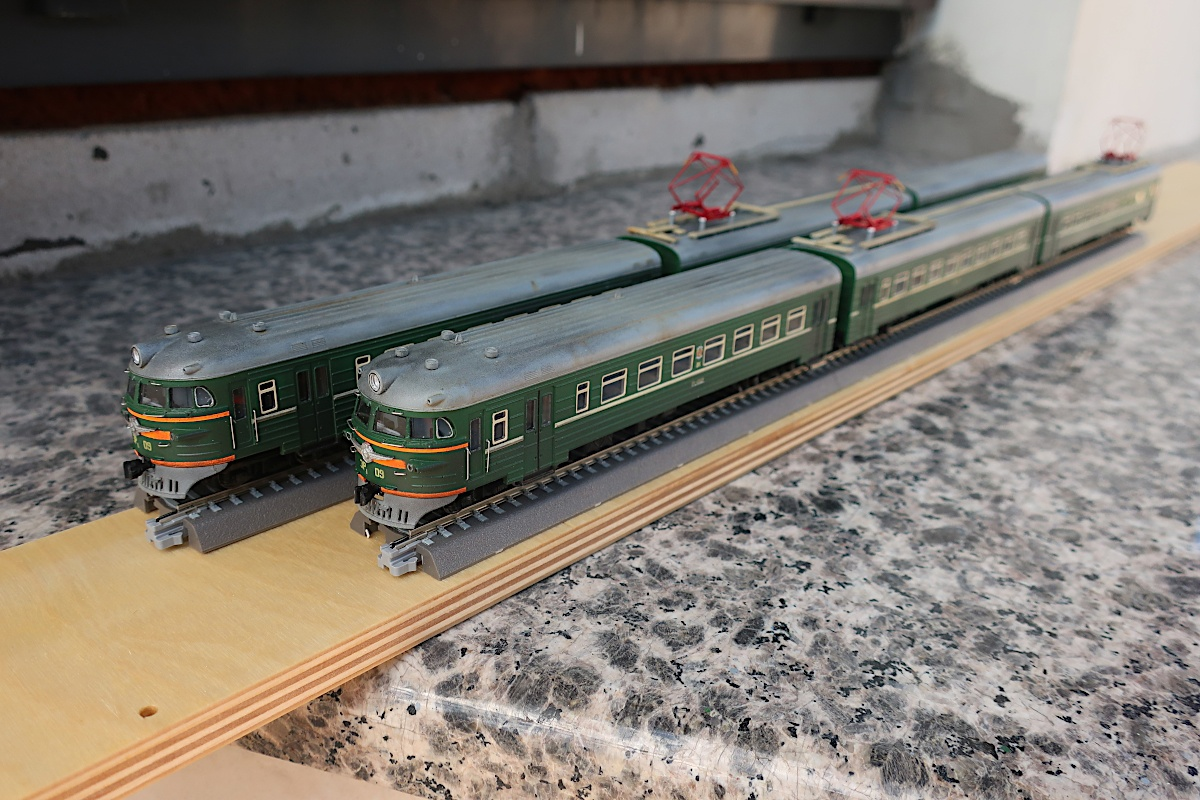 Модель ходовая. Ходовая часть представляет собой две австралийские тележки, установленные пока на временную смоляную раму. Далее модель будет отправлена к другому мастеру на "освещение", будет также выполнена латунная рама на моторный вагон.