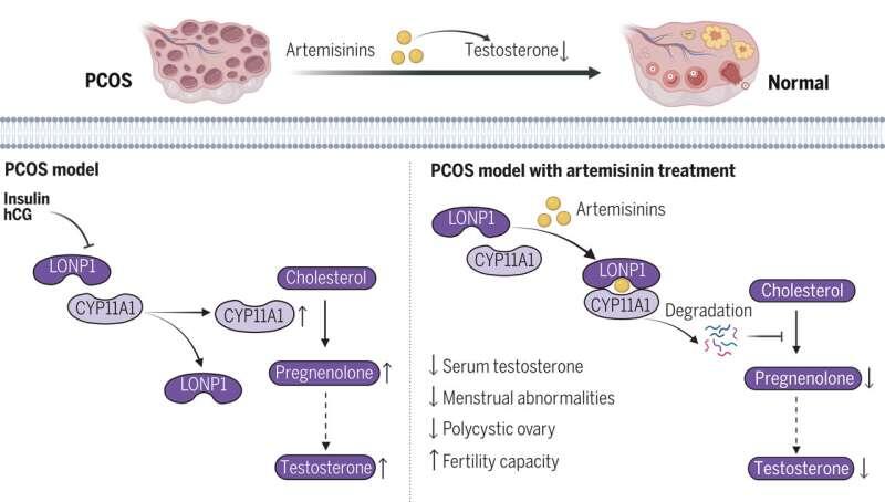 Авторы нового исследования из больницы Чжуншань Фуданьского университета (University’s Zhongshan Hospital) совместно с соавторами из других учреждений Китая, обнаружила, что некоторые противомалярийные препараты перспективны в лечении синдрома поликистозных яичников (СПКЯ) у женщин. В своем исследовании, опубликованном в научном журнале Science, ученые протестировали препарат дигидроартемизинин (разновидность артемизинина) на мышах, а затем на небольшой группе женщин с СПКЯ. Элизабет Стенер-Викторин (Elisabet Stener-Victorin) из Каролинского института (Karolinska Institutet) опубликовала статью в которой излагает свою работу и предполагает, что она может изменить подход к лечению СПКЯ в будущем. СПКЯ — это состояние, при котором у женщин наблюдается аномальный рост кист на яичниках, что приводит к таким симптомам, как боль в животе, нерегулярный менструальный цикл, чрезмерный рост волос, прыщи и часто ожирение. Симптомы этого состояния обычно объясняются выработкой аномально высоких ур