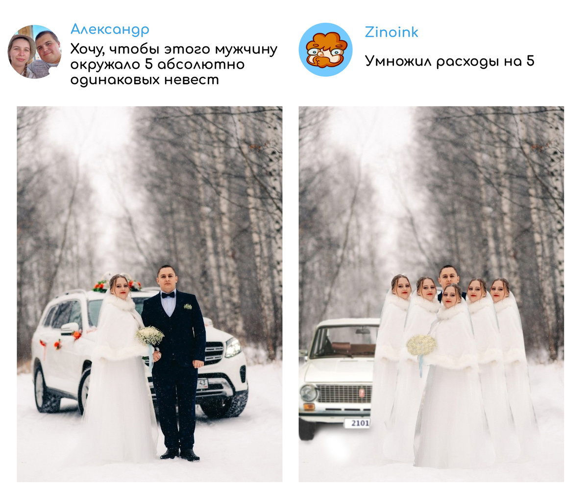 «Хочу 5 одинаковых невест!» — 6 смешных работ от мастера фотошопа, который исправляет фото людей