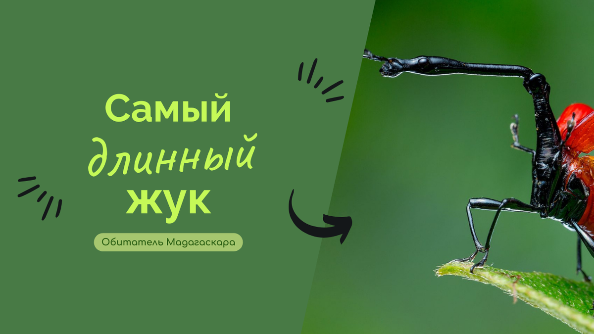 Долгоносик-жираф, или Trachelophorus giraffa, — одно из самых необычных и уникальных насекомых, обитающих на территории Мадагаскара. Этот жук семейства трубковертов привлекает внимание своими необычайными размерами и строением, а также своей жизнедеятельностью. Внешний Вид и Анатомия Долгоносик-жираф получил своё название благодаря длинной шее, особенно заметной у самцов. Шея может составлять до половины длины их тела, что делает их схожими с миниатюрными жирафами. Общая длина жука варьируется от 2.5 до 3 сантиметров, что делает его относительно крупным жуком. Особенности внешнего вида
