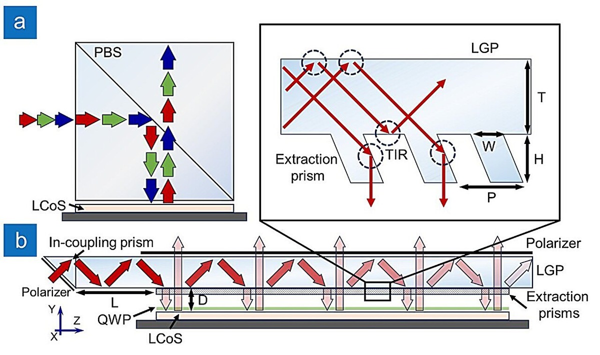 Ученые создали компактную систему подсветки для AR-очков на базе LCoS-дисплеев. Новинка позволит разрабатывать более легкие и стильные очки дополненной реальности. В отличие от VR, дополненная реальность (AR) накладывает цифровые объекты на реальный мир. AR-технология имеет широкий спектр применения, включая образование, обучение, торговлю, маркетинг и навигацию. Обычно AR-очки состоят из двух основных компонентов: проектора, который создает изображение, и оптической системы, выводящей его на глаза пользователя. Для обеспечения комфортного использования и высокого качества изображения важна компактная и энергоэффективная система подсветки. Ученые предлагают использовать пластину-световод для эффективной подачи света на LCoS-дисплей. Разработанная система демонстрирует отличную равномерность освещения и высокую контрастность, а также хорошую цветопередачу. Исследователи считают, что их разработка позволит создавать более тонкие и стильные AR-очки нового поколения.