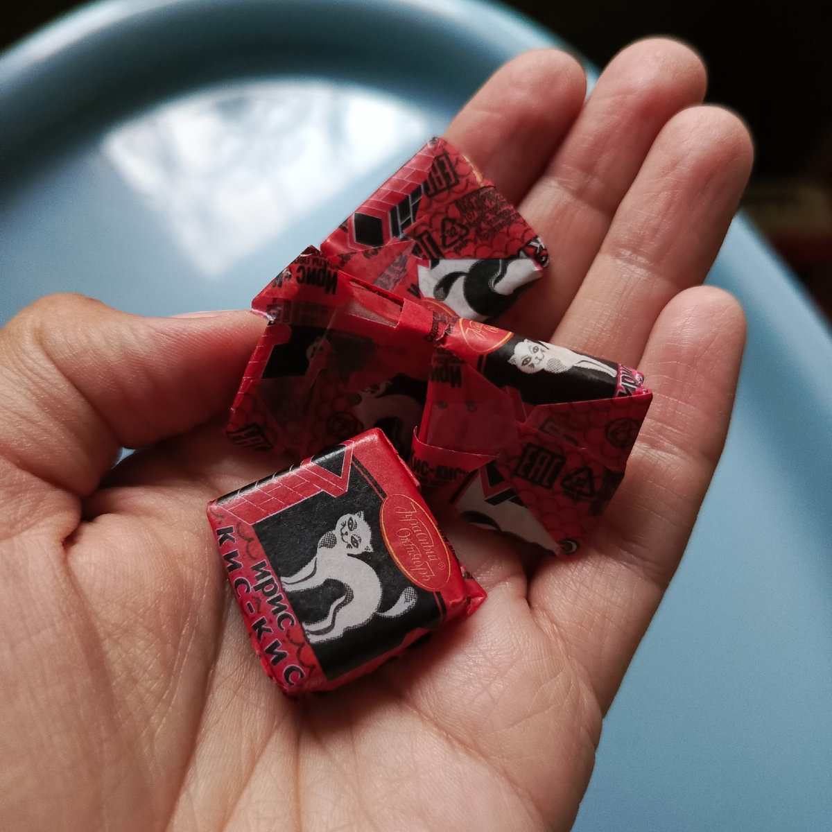 У нас сегодня младшему - год и три месяца. И решила я отметить это дело вкусняшкой своего детства. Мама говорит, что этому рецепту ее научили в Новосибирске. Так что сибирякам большое спасибо! Готовится быстро, получается вкусно. Для приготовления нам нужны: Ириски освобождаем отоберток и складываем в большую кастрюлю. Туда же добавляем масло, порезанное на кусочки. Ставим на медленный огонь и ждём, когда ириски растают. Надо обязательно постоянно мешать это дело, иначе всё пригорит. Сначала будет вот такая консистенция: ириски отдельно, масло отдельно. Тщательно размешиваем до тех пор, пока содержимое кастрюли не превратится в сплошную массу. Выключаем огонь и высыпаем палочки в кастрюлю. Хорошенько перемешиваем. Палочки должны полностью покрыться карамелью. Выкладываем на блюдо и ждём, когда они остынут. Можно высыпать их на противень, тогда палочки не слипнутся между собой. И можно пить чай ))) _________________ А старший сын сегодня узнал отметку по математике - двух баллов до пяте