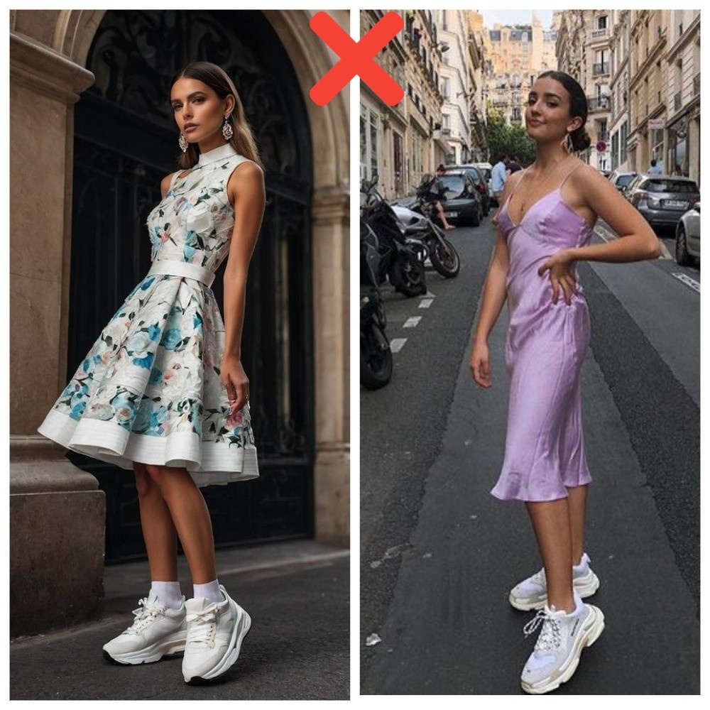 Ошибка 1 → Сочетать массивные кроссовки с элегантным платьем