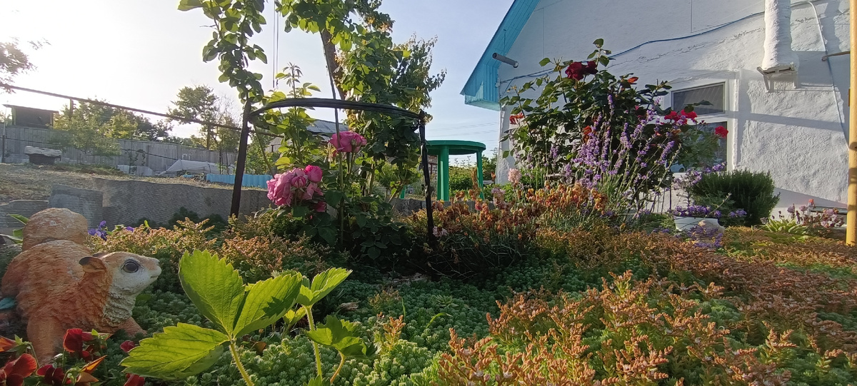 Приветствую, дорогой читатель! Розы - мои любимые цветы! Это абсолютное совершенство, идеальная красота и невероятный аромат! Наш сад ещё молодой, поэтому хвастаться роскошными кустами рановато. Но всё же, уже не стыдно показать своих любимиц. Самые "старые" кусты живут на этой клумбе: Эта роза была куплена на рынке в 2021 году. Про название сорта ничего сказать не могу - не помню. Если кто-то подскажет, буду очень благодарна! Цветёт шикарными, очень крупными бутонами. Аромат могу сравнить с шиповником :) А эту безымянную красавицу мы приобрели в частном питомнике с.Дальнее в 2022 года. Очень красивые бутоны идеальной формы и безумно яркий аромат. А вот эта роза носит громкое название - Памяти Высоцкого. Собственно поэтому я его и запомнила :) Очень крупные, ароматные яркие бутоны: Чайная роза переселилась к нам осенью прошлого года из сада друзей. На их участке на Северной стороне города, где круглый год буйствует ветер, цветок чувствовал себя неважно. Эта нежная красавица появилась