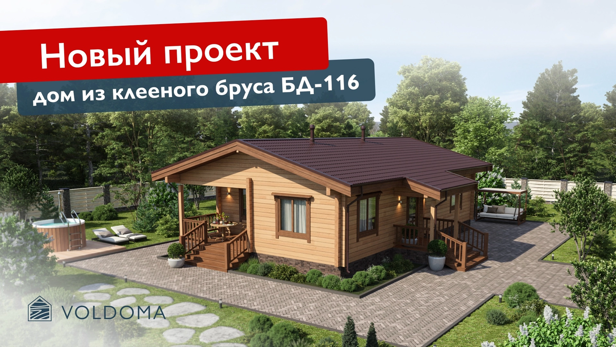 Новый проект дома БД-116 от VOLDOMA! В июне мы разработали целых 3 новых проекта одноэтажных домов, сегодня представляем первый — дом из клееного бруса БД-116. Здесь есть просторная кухня-гостиная, 3 спальни, терраса и даже гардероб! Площадь — 116 м2 Размер — 10,3x13,5 м Терраса — 10,5 м2 Прихожая — 4,5 м2 Тех.помещение — 3,2 м2 Кухня-гостиная — 36 м2 Спальни две по 13,3 м2 и одна 11,8 м2 Гардеробная — 3,1м2 С/у — 5,9 м2 Холл — 6,3 м2 Стоимость дома «под ключ» с коммуникациями - 6,2 млн. ₽ Можно оформить в ипотеку от 3% и вложить маткапитал! Звоните и пишите нам: —8-800-222-82-44, —Telegram, WhatsApp: 8(921)064-74-44, 8(921)250-60-66 VOLDOMA — добро пожаловать домой!