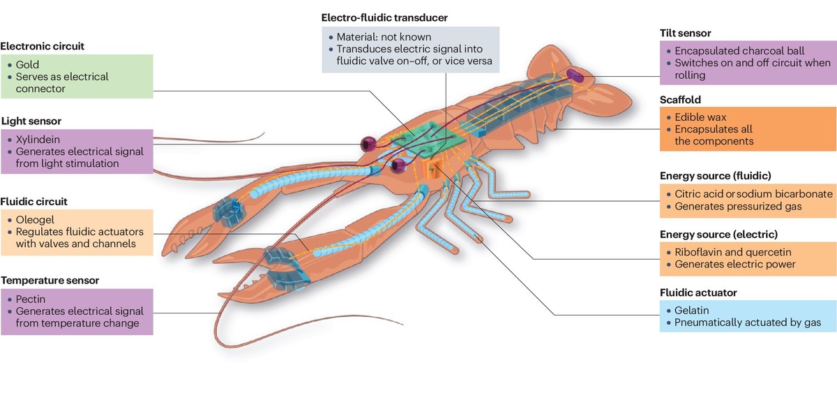 Ученые из Федеральной политехнической школы Лозанны работают над созданием полностью съедобных роботов, которые в будущем могут оказаться на наших столах. Проект RoboFood объединяет технологии робототехники и пищевых продуктов с целью сокращения электронного мусора, доставки питания и лекарств нуждающимся людям и животным, мониторинга здоровья и создания новых гастрономических впечатлений. Научные исследования в области съедобных роботов продвигаются, но перед учеными стоят несколько технических вызовов. Например, разработка полностью съедобных электронных компонентов, таких как батареи и сенсоры, остается сложной задачей. Однако уже сегодня созданы частично съедобные робототехнические системы, включая беспилотники с крыльями из рисовых печенек и роликовые роботы из желатина. Перед тем как предложить полноценный рецепт съедобных роботов, ученые должны разрешить вопросы восприятия обработанных продуктов человеком и животными, а также