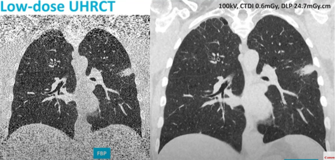 Ссылка на материал статьи: http://www.course-as.ru/dev_rtxa3k30.html#Прорыв "XVIII Всероссийский национальный конгресс лучевых диагностов и терапевтов - "Радиология-2024", прошедший в мае 2024г. в Сколково, принес новые данные по переходу "тяжелого" рентгеновского оборудования на новый технологический уровень. Одним из ведущих иностранным производителем высокотехнологического X-Ray оборудования - фирмой CANON MEDICAL SYSTEMS (бывшая Toshiba) была показана новая технология улучшения качества визуализации изображений, полученных на CT и Angio системах с новыми высокоразрешающими X-Ray детекторами (размер ячейки 250 микрон). Необходимость серьезной обработки полученных X-Ray изображений вызвано значительным уменьшением X-Ray дозы, регистрируемой каждым элементом детектора (увеличение разрешения в 2 раза - переход с 500 до 250 микрон на пиксель детектора - приводит к уменьшению X-Ray дозы на пиксель детектора в 4 раза, что приводит к появлению значительного шума в изображении. Вот как выгл