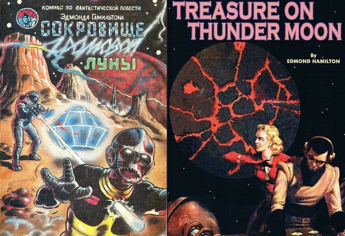 Сокровище Громовой луны - повесть, написанная Эдмундом Шклярским Эдмондом Гамильтоном в 1942 году и изданная в сокращенном варианте, в 1956 году у нас, в небезызвестной "Технике Молодёжи". Если обычно Гамильтон знаменит чуть ли не космо-операми, эпопеями, то тут у нас в какой-то мере даже шедевральная вещь - по сути своей, это тот же Остров сокровищ, но с парой нюансов - ну и в космосе; и можно сказать, тема того, что нужно собраться и из последних сил что-то доказать миру, что жизнь твоя прожита не зря, попутно испытав, что такое товарищеская поддержка.