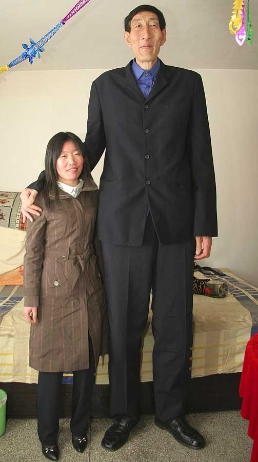 Бао Сишунь неоднократно признавался самым высоким человеком планеты (на фото со своей женой, с которой у них приличная разница не только в росте, но и в возрасте- 25 лет).