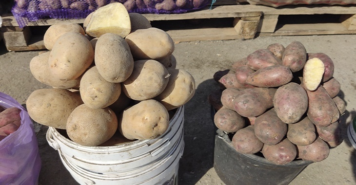 Цены на картофель в регионе, по данным Волгоградстата, за неделю выросли почти на 8% и приблизились к 60 рублям за килограмм. Между тем, читатели V102.RU сообщают, что в некоторых супермаркетах стоимость «второго хлеба» достигла уже 75 рублей. По таким ценам продается в основном молодой картофель - клубней старого урожая практически уже нет. Вслед за картофелем продолжает расти в цене и лук. Килограмм этого овоща за неделю подорожал на 5,43% - до 45 рублей. А вот капуста подешевела на 4,5%. Килограмм теперь стоит 36,16 рубля. За неделю изменились цены и на некоторые другие продукты питания. Курятина подорожала еще на 2,78% - стоимость килограмма почти достигла 200 рублей. При этом самым дорогим видом мяса по-прежнему остается баранина (689 рубля за кг). На 1,03% подорожал сахар (71,88 рубля), на 2,35% - творог (368,17 рубля). А вот чай подешевел почти на 5% - до 860 рубля за кг. Продолжает падать в цене и пшено – снижение составило за неделю около 2% (37,56 рубля). Стоимость бананов ос