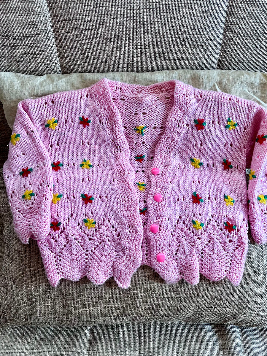 Вот такая кофточка спицами, с вышивкой, всё и сразу 👍😃
