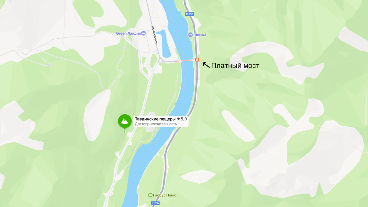 Либо можно проехать по бесплатному Айскому мосту в селе Соузга.
