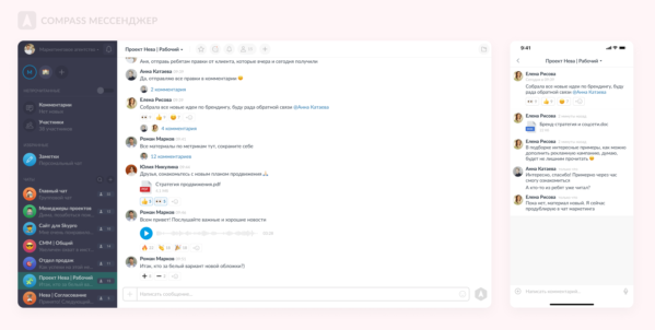 Сделайте общение в команде эффективным и безопасным в мессенджере Compass. Создайте изолированное рабочее пространство в быстром приложении, где команда фокусируется только на важном.
