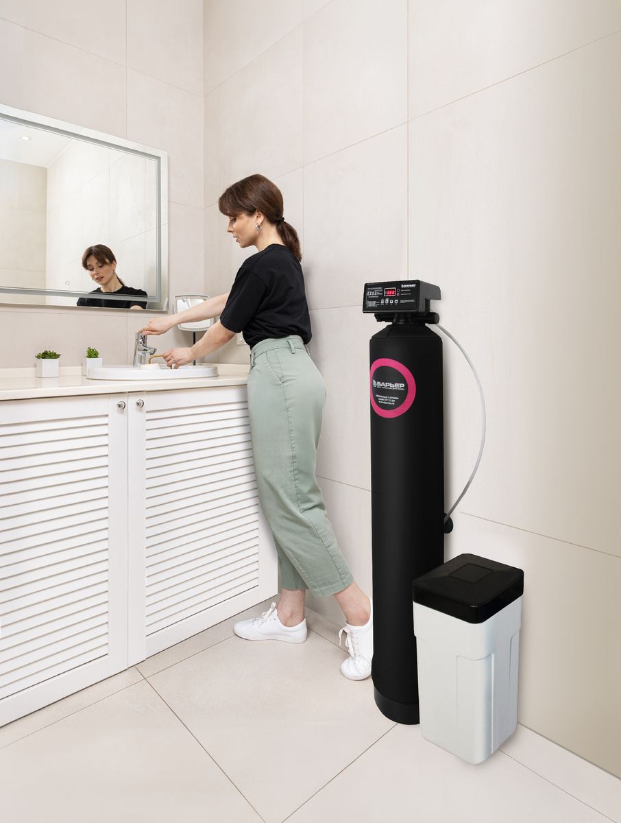 Жесткая вода крайне некомфортна в быту. Высокое содержание минералов, таких как соли кальция и магния, приводит к образованию накипи на сантехнических приборах, плохому состоянию кожи и волос, а также к снижению эффективности работы бытовых приборов. Есть эффективное решение этой проблемы — магистральный фильтр для жесткой воды. Магистральные фильтры — это системы водоочистки, которые устанавливаются не под мойку, как проточные фильтры, а врезаются в трубу, снабжающую водой весь дом или квартиру. Умягчающие магистральные фильтры могут быть как в виде колбы на базе корпуса Big Blue, так и в виде мини-систем колонного типа. Как понять, какой вариант необходим? Все просто! Если вы хотите добиться умягчения воды под какую-то конкретную задачу с относительно небольшим расходом, например, исключительно для стиральной и/или посудомоечной машины, можно обойтись фильтрами БАРЬЕР СОФТЛАЙН или использовать картридж Профи Big Blue 20 Смягчение (рассказываем в статье – «Как смягчить воду в стиральн