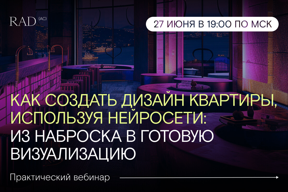 Полезностей много, но, как видите, изучать долго, сложно и муторно. Именно поэтому мы предлагаем вам присоединиться 27 июня в 19:00 Мск к нашему бесплатному вебинару «Как создать дизайн квартиры, используя нейросети: из наброска в готовую визуализацию со 100% точностью». Наш эксперт Никита Глухов о многом расскажет, ответит на вопросы, а вы на практике почувствуете, как это - создавать дизайн-проект квартиры при помощи нейропомощников.