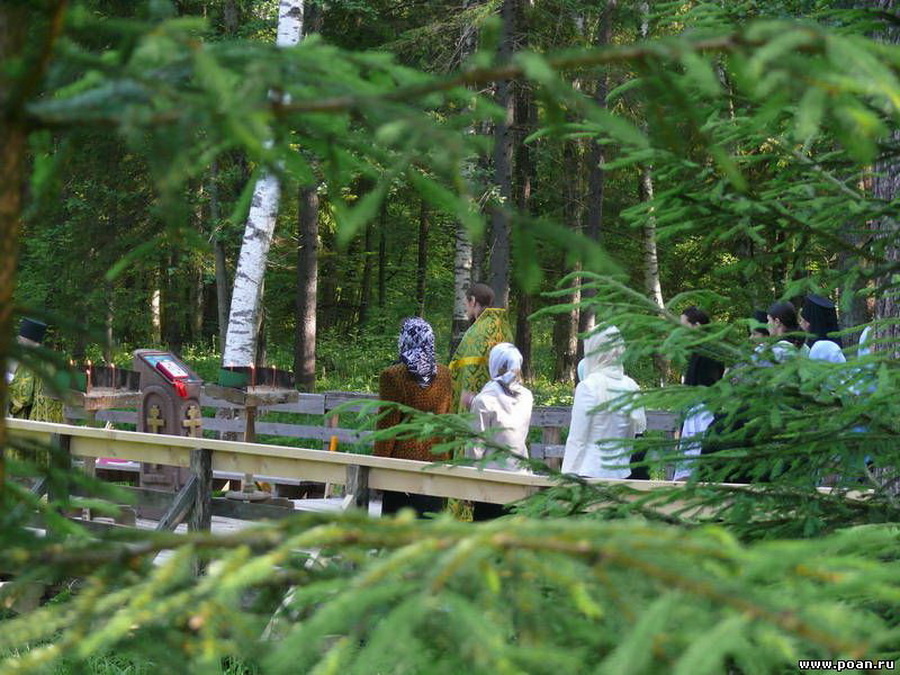 В 174 км от Москвы по Киевскому шоссе, в 10 км от железнодорожной станции «Тихонова Пустынь» животворит святой источник, известный своими целительными свойствами еще с 15 века. В те далёкие времена в лесах под Калугой жили разве что дикие звери. Для уединения и молитвы лучше места было не сыскать. Пешком из первопрестольной, из Пудова монастыря, в дальнюю лесную глушь с одной-единственной иконой Божией Матери «Всех скорбящих Радость» пришёл монах Тихон. Будущий святой, пребывая в молитвах Богородице день и ночь, стал обживать окрестности. Домом для него стал исполинский дуб – в его огромном дупле можно было устроиться на ночь. Дикороссы и коренья заменяли монаху хлеб. А вот чистой воды, несмотря на то, что лесная почва в некоторых местах была заболоченной, не было. Легенда гласит, что преподобный Тихон своими руками вырыл глубокий колодец, который тут же наполнился чистейшей родниковой водой. Прослышав о странном монахе, к нему сначала из любопытства потянулись местные крестьяне. Нача