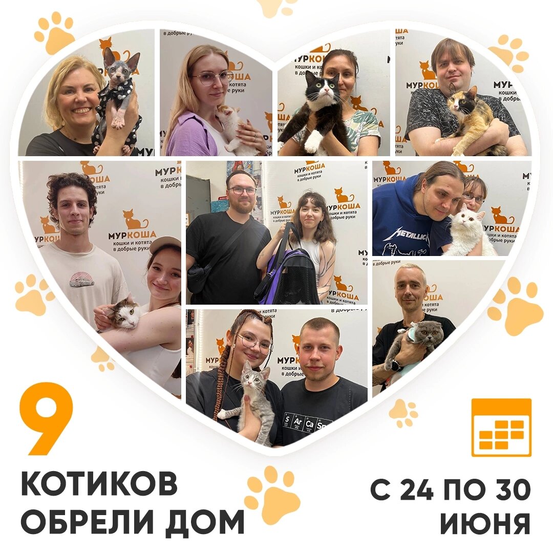 Друзья! Сегодня среда, и мы, как обычно, подводим итоги работы «Муркоши» за прошедшую неделю. Кто же стал счастливым выпускником Центра помощи кошкам «Муркоша» с 24 по 30 июня 2024 года? 😺 🥳 Итак, за прошедшую неделю домашними и любимыми стали 9 котиков! Чёрно-белого красавца нашли на улице. К счастью, Варистора привезли в наш приют. Отсюда, в объятиях куратора, котик отправился домой! Пушистая Шардоне жила у магазина, не находила себе места. Неравнодушные люди привезли кошечку к нам. И вот, теперь Шардоне домашняя! Во дворе жилого комплекса проживал котёнок Жирафик. А сейчас он обживает свой новый дом вместе с любящей семьёй, которую он нашёл в «Муркоше»! Крошку Сомерсет купили у заводчиков, через два дня началась аллергия, заводчики отказались принимать назад. А у нас кошечка встретила настоящую хозяйку! Нежную Эльсанту нашли на улице. Затем пёстрая кошечка оказалась в «Муркоше». Она присматривалась к гостям приюта. И вот, девочку заметил прекрасный хозяин! «Освоилась быстро, п