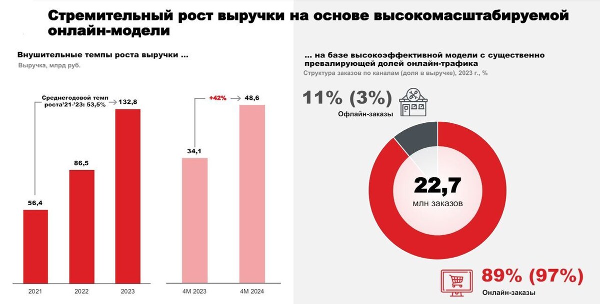 Ранее мы с вами разбирали крупнейшего онлайн-игрока на рынке DIY в России – ВсеИнструменты.ру. Сегодня окончательно стало известно о выходе компании на IPO под тикером VSEH. Книга заявок открылась сегодня в ценовом диапазоне от 200 рублей до 210 рублей за одну акцию, и завершится предварительно 4 июля. Акции будут включены в первый уровень листинга Московской биржи. Уже есть индикации спроса от институциональных инвесторов более чем 70% от книги заявок прошла новость, что книга переподписана по верхней границе. Free float может составить около 12%, что в будущем откроет эмитенту дорогу во многие индексы и первый котировальный список Мосбиржи, а значит сформирует дополнительный спрос на акции со стороны институционалов. ❗️Итак, индикативный ценовой диапазон IPO соответствует рыночной капитализации компании в 100–105 млрд рублей и если мы посмотрим на последний отчет эмитента, то увидим, что размещение пройдет с мультипликатором P/S менее 1x, что предполагает более чем двухкратный дискон