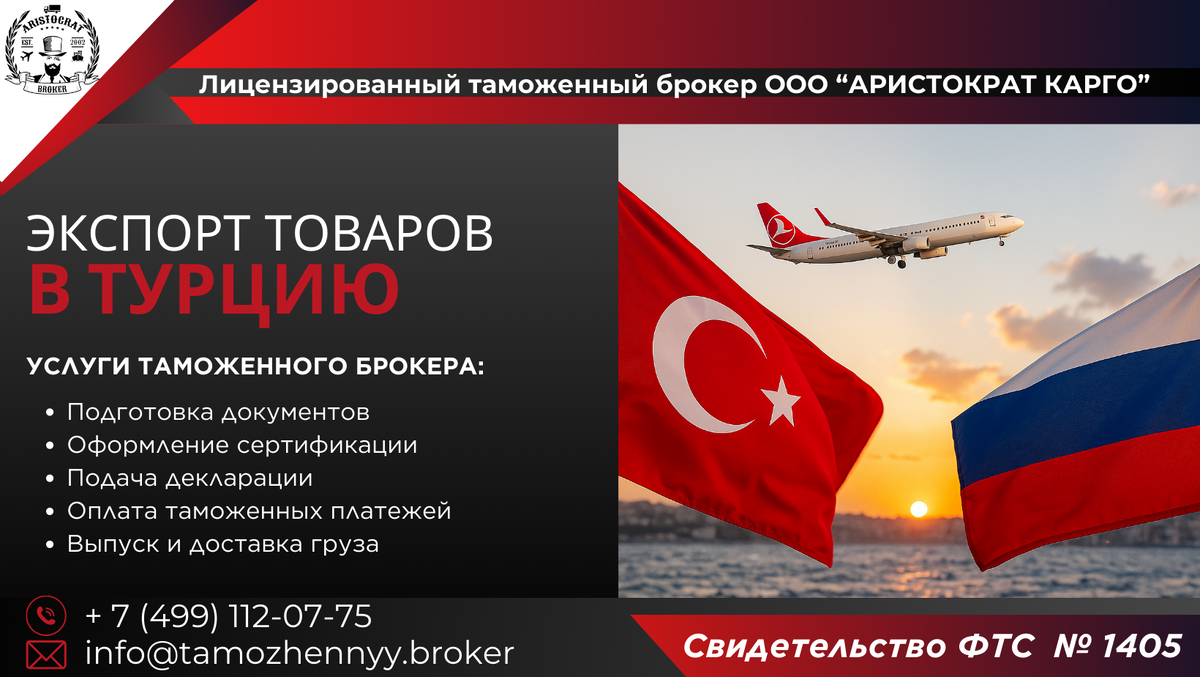 Турция входит в двадцатку стран со стабильной и крупной экономикой мира. Несмотря на непростую международную ситуацию, Россия и Турция взаимодействуют во многих отраслях и стремительно расширяют партнерские отношения. Экспорт в Турцию ежегодно увеличивается, стабильно расширяется список российских товаров востребованных турецкими партнерами. Лицензированный таможенный брокер ООО "Аристократ Карго" поможет разобраться в тонкостях экспорта в Турцию. Позвоните нам по номеру телефона +7(499)112-07-75, напишите по электронной почте info@tamozhennyy.broker или обратитесь за бесплатной консультацией. За последний год, благодаря экспортным поставка в Турцию, товарооборот между Россией и Турцией вырос в два раза. Российские бизнесмены нашли для себя рынок сбыта в Турции достаточно привлекательным и все больше товаров собираются предложить на экспорт. Востребованная российская продукция в Турции: Благодаря удобному географическому расположению с Турцией, затраты на логистику меньше, если сравни
