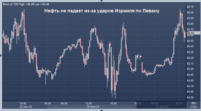 Беспокойство по поводу возможности распространения войны между Израилем и Хамасом в Газе на Ливан ограничило падение цен. График нефти марки Brent интервалами в 15 минут Цены на нефть выросли в четверг, так как риски перебоев с поставками из-за роста геополитической напряженности на Ближнем Востоке помогли противостоять опасениям по поводу спроса после неожиданного увеличения запасов в США. Фьючерсы на нефть марки Brent подорожали на 76 центов, или 0,9%, до $86,01 за баррель к 09:30 по Гринвичу. Фьючерсы на американскую нефть West Texas Intermediate выросли на 69 центов, или 0,9 %, до 81,60 доллара.
