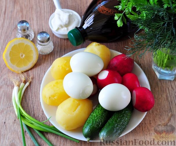 Яйца отварите вкрутую (8 минут), остудите в холодной воде минут 5-10, затем очистите. Шаг 2: Отварной картофель нарежьте некрупными кубиками.