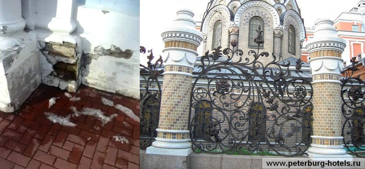Когда увидел такую фотку подивился ну ладно реставраторы пьяные, а комиссия принявшая выполненные работы по реставрации ограды тоже под шафе или в проекте зодчего, ограда так и должна была быть выполнена –левая колонна не под прямым углом - дубль пизанской башне, а правая не родная сестра для левой –от другого отца –сводные сестры =у левой красивая спираль из кирпичей по поверхности колонны, а у правой кирпичи уложены как попало…и не стыдно за город ,срамота господи ,И НИКОМУ НЕТ ДЕЛА как и до оштукатуренной ОГРАДЫ СМОЛЬНОГО с выпадающими кирпичами и отвалившейся штукатуркой …Мы где живем в Камбодже и после бомбежки -не стыдно так работать мастера облицовки и реставрации, посрамитесь …слепые -тогда нечего вам тут делать- уступите рабочее место зрячим. и ваше счастье ,что не я приемщик ваших работ ,языком бы укладывали всё, а руки за спиной хомутами были бы стянуты.