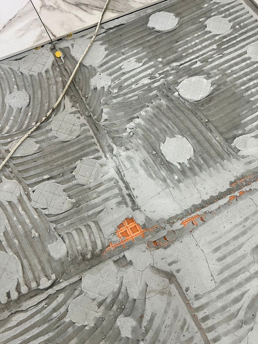 Особенно актуально для крупноформата, а в примере, который мы разбираем, плитка ближе к крупноформатной (больше 30 х 30 см).