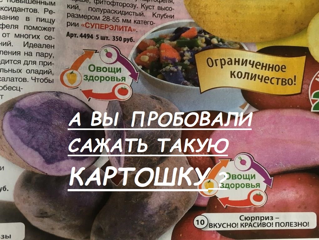 А уж как хвалили синюю картошку! Кричали: «Спешите купить! Всем не хватит!» Ей пели такие дифирамбы и похвалы... Что дескать эта картошка особенная, такой больше нет и вообще — количество для реализации ограничено.