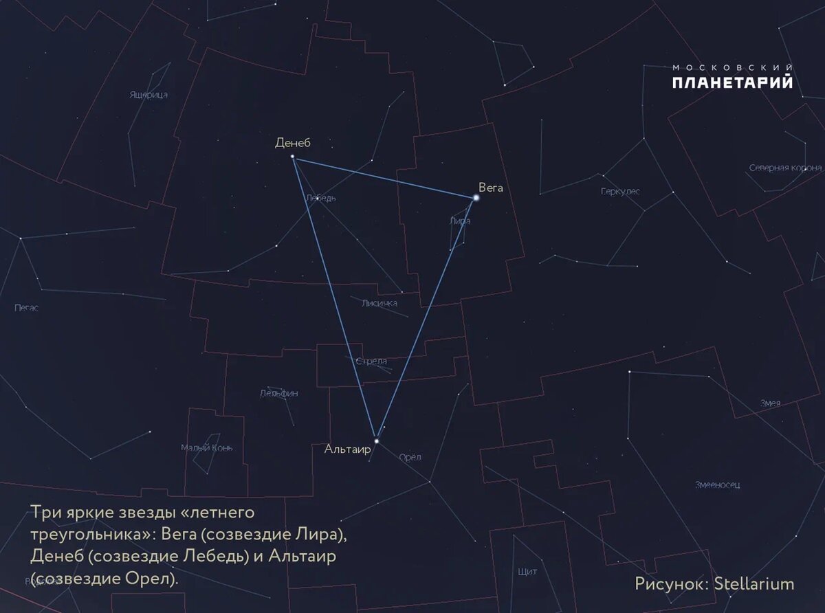 Июль малоблагоприятен для наблюдений звездного неба в средних, а особенно в Северных широтах страны. В условиях белых ночей или полярного дня можно наблюдать только наиболее яркие объекты неба. Солнце не опускается достаточно глубоко под горизонт, и в атмосфере присутствует рассеянный солнечный свет, что ухудшает условия для наблюдений слабых туманных объектов космоса. После полуночи высоко над южным горизонтом поднимаются созвездия Лебедь, Лира и Орел, их самые яркие звезды – Денеб, Вега и Альтаир, образуют известный астеризм Летний Треугольник, вблизи горизонта находится созвездие Стрелец. На востоке – Пегас. Справа от Лиры – созвездие Геркулеса, могущественного героя мифов Древней Греции, которому удалось победить свирепого Немейского Льва, коварную Лернейскую Гидру и совершить еще десять замечательных подвигов. Западнее, рядом с Геркулесом созвездия Северная Корона и Змееносец. Над северной стороной у горизонта виден Возничий, правее и выше него – Персей и Кассиопея. В северо-вос