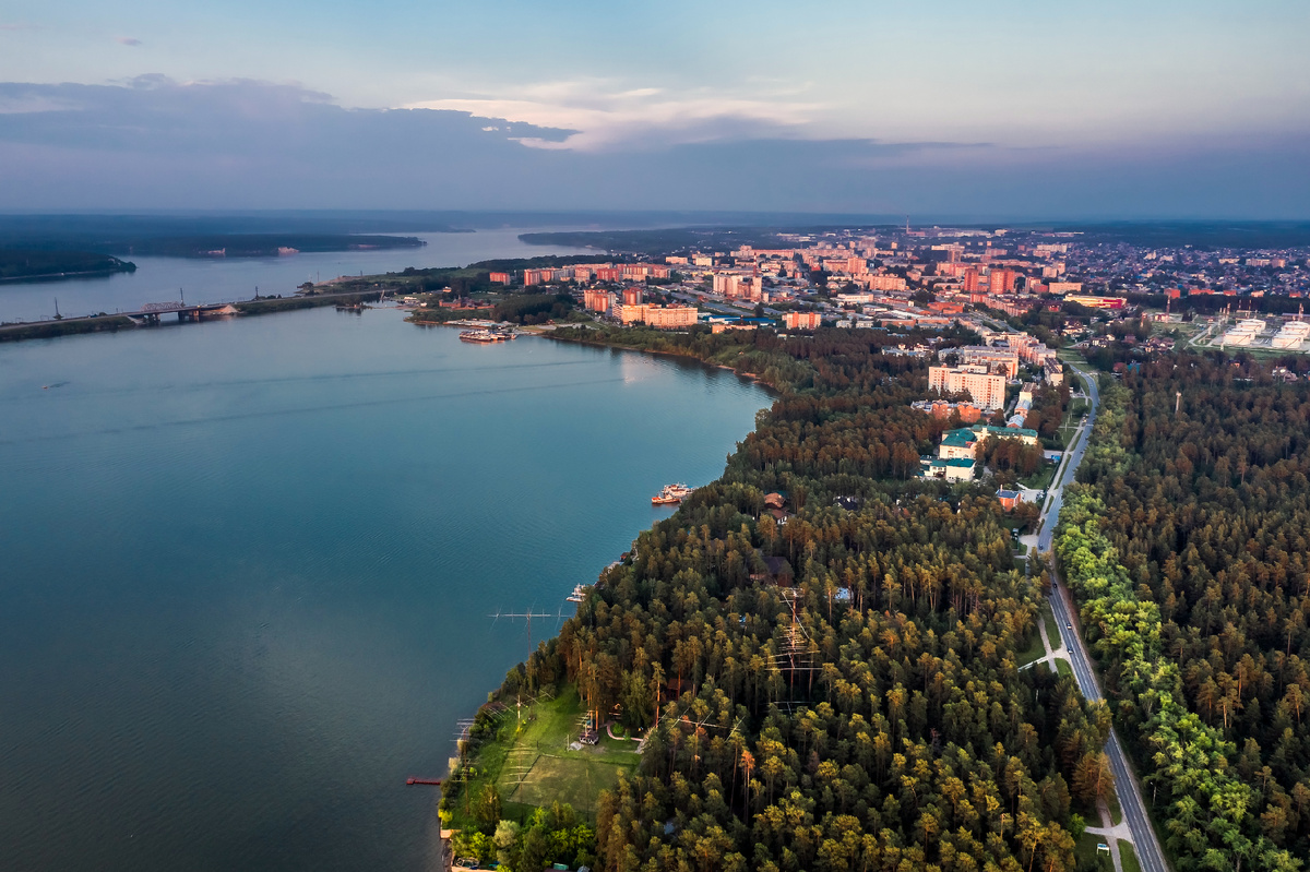 Бердск. Улица Морская, пляж "Дюны" с высоты птичьего полёта. Июнь 2024.