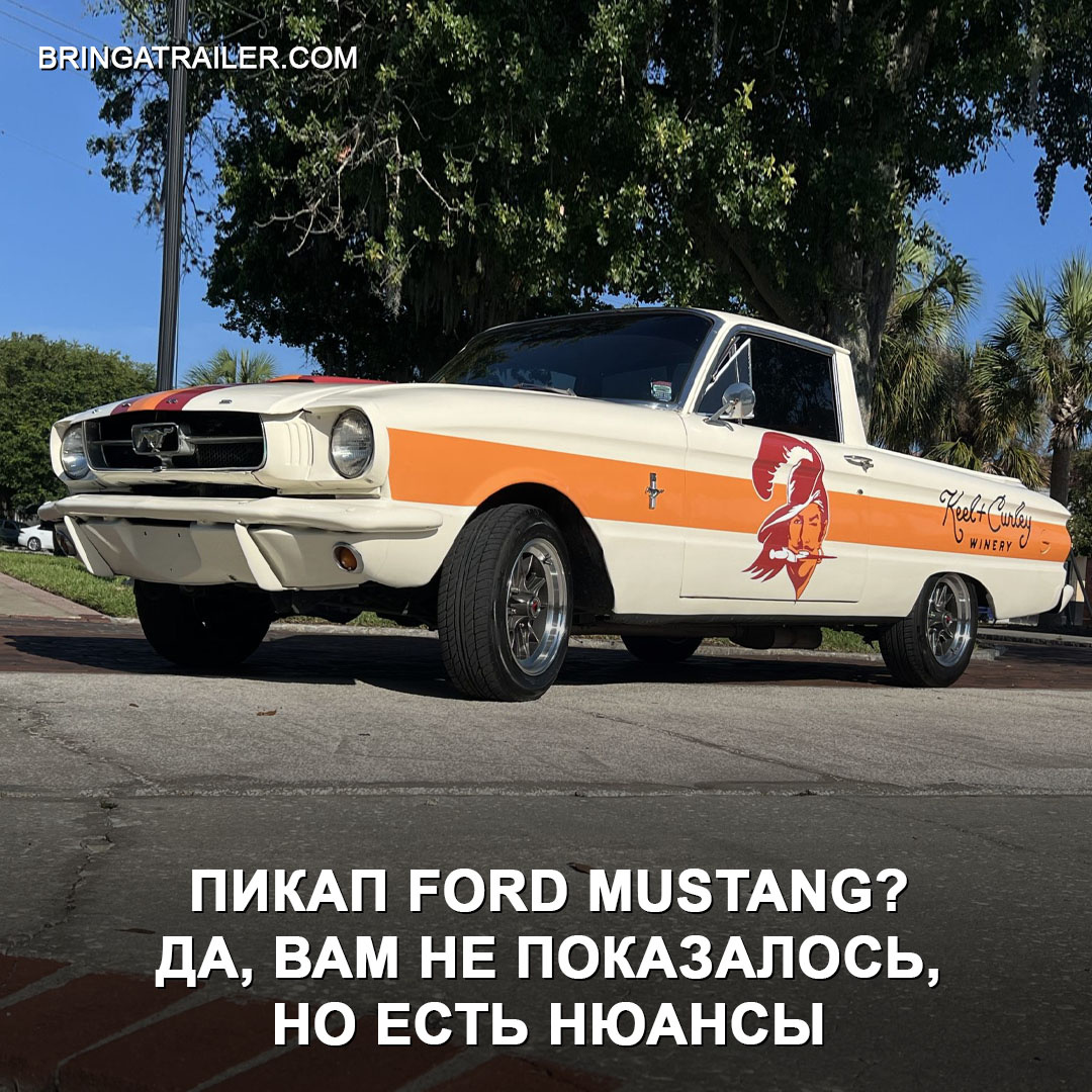 На самом деле это Ford Falcon Ranchero 1960 года, но после «пластической операции» и с заменой «внутренних органов». Морду взяли от первого Мустанга, под капотом — прокачанный V8 от Mustang GT 1985 года в паре с 5-ступенчатой механической коробкой передач. Внутри автомобиля перешитый в коричневую кожу салон, сиденья с электроприводом от Ford Explorer 1990-х годов, модернизированная центральная консоль. В качестве бонуса — чёткие диски, оригинальная расцветка и двойной выхлоп. Купили бы себе такой грузовичок? #дромтачкадня #автомобиль #машина #авторынок #тюнинг #ford #mustang