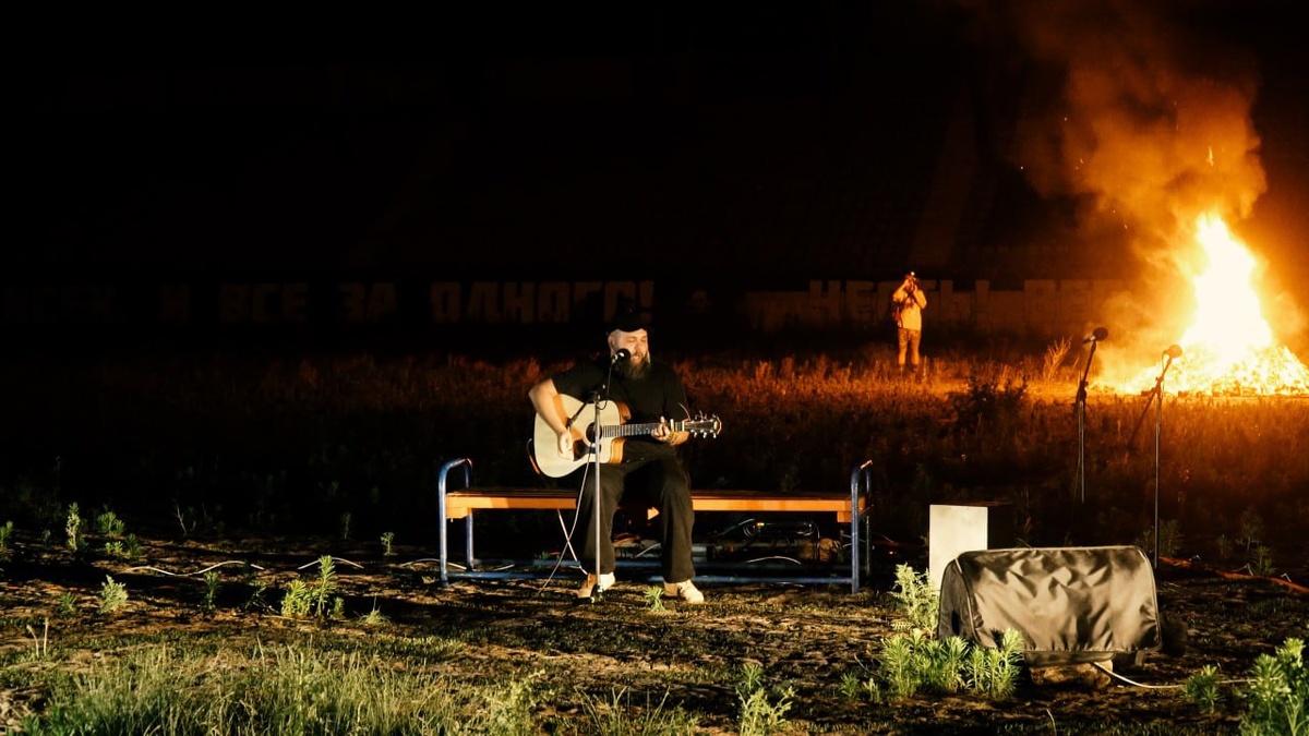 Андрей Михеев – специально для @wargonzoya – рассуждает о роли музыки на фронте. Только что закончилось выступление музыкантов перед бойцами «Эспаньолы». Подхожу к Бранимиру, прошу дать комментарий для @wargonzoya . Саша не первый раз в зоне СВО, он уже неоднократно пел для бойцов, Донбасс его знает и любит. Но говорить об этом он не очень хочет: – Слушай, такое впечатление, как будто это подвиг какой-то, – смущается он. Но краткий комментарий на камеру все-таки даёт: – Прежде всего, выступать на фронте – это честь для меня. Чувствуется, что именно так он и думает. Бранимир еще во время концерта между песнями произнес важные слова: «Большая радость – играть лучшим людям России». Смотрю на музыкантов, которые фотографируются с добровольцами из «Эспаньолы» – и понимаю, что для них этот концерт важен не меньше, чем для бойцов. Во-первых, это действительно уникальный опыт: все эти дни мы, конечно, смеялись над тем, что, получается, это был первый стадионный концерт в Мариупо
