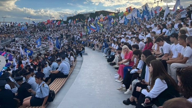 Сегодня, 27 июня, в 19:00 в амфитеатре Нижней террасе Центральной набережной стартовала торжественная церемония открытия третьего по счету молодежного фестиваля #ТриЧетыре в Волгограде, сообщает корреспондент V102.RU. Хотя над Волгой и собрались облака, дождь все-таки не испортил праздничную атмосферу, которую создавали улыбчивые молодые люди - главные герои и участники фестиваля. Мероприятие началось с переклички представителей студенческих команд вузов и ссузов, а также районов и городов Волгоградской области и новых регионов России. Молодежь с удовольствием приняла участие в энергичном танцевальном флешмобе, а появление губернатора Волгоградской области Андрея Бочарова встретила аплодисментами. Андрей Бочаров приветствовал участников фестиваля, напомнив, что молодежный праздник стал реализацией высказанных юными волгоградцами идей и кейсов. После общения главы региона с участниками праздника в амфитеатре пройдет концерт с участием волгоградских коллективов и звезд эстрады. Напомним,