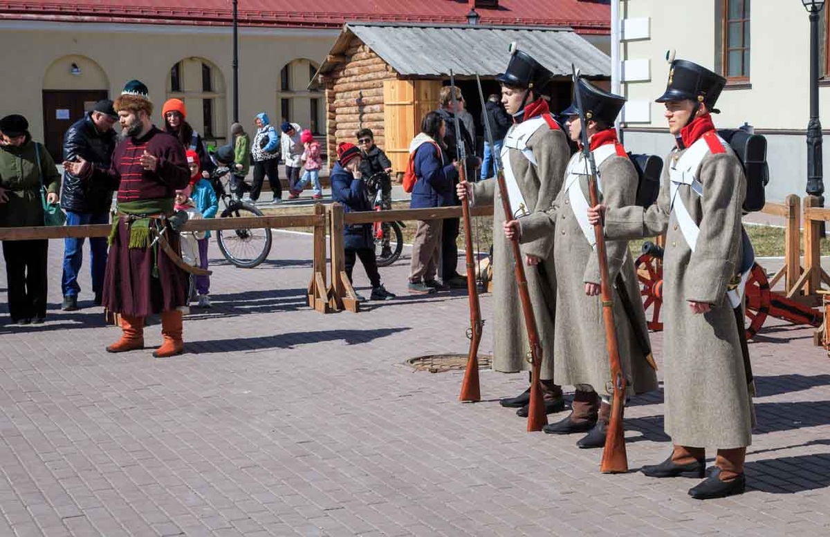 Перед зданием казарм в Омской крепости под барабанный бой выстроились солдаты в киверах и серых шинелях. Служилые маршируют, проделывают упражнения с ружьями-фузеями. Все как двести лет тому назад. Есть только одно отличие: за этим увлеченно наблюдают многочисленные зрители, яблоку негде упасть...