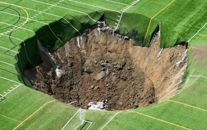 По нынешним данным известно, что в штате США Иллинойс внезапно под землю провалилось футбольное поле, после чего образовалась 30-метровая воронка. Как подчёркивают местные СМИ, причиной провала грунта могло стать обрушение местной шахты, находящейся под стадионом.