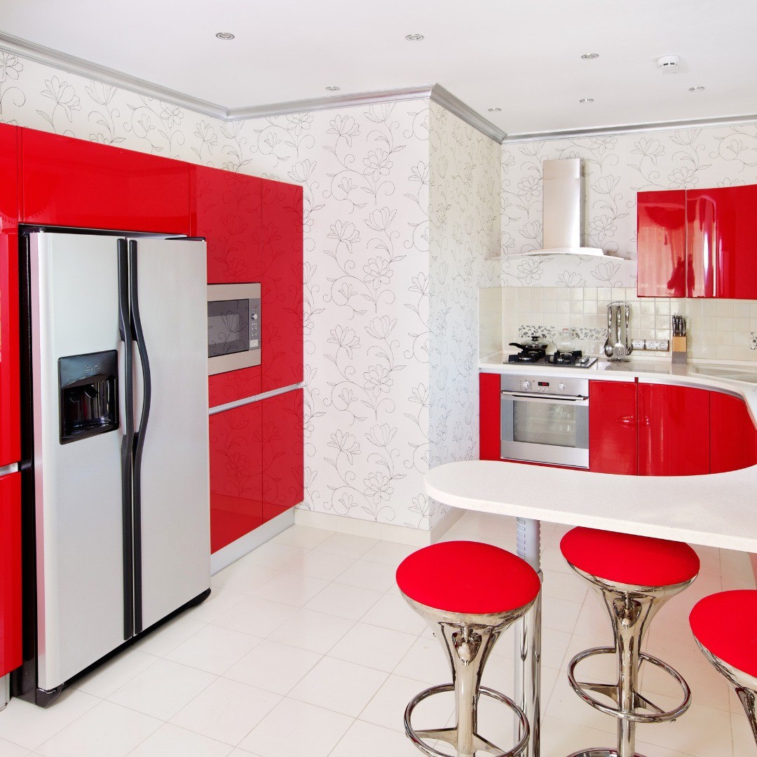 Кухонные гарнитуры изготавливаются из разных материалов, и если речь идёт о гладких фасадах без фрезеровки, то чаще всего, они изготавливаются из МДФ. «Пластик» и «эмаль» - это облицовка, благодаря которой мебель приобретает окончательный внешний вид. Пластиковое покрытие довольно плотное, и оно так же плотно прилегает к заготовке, благодаря использованию специального клея и термо-вакуумного пресса. В итоге, получается «покрытие на века», которое со временем не отслаивается.