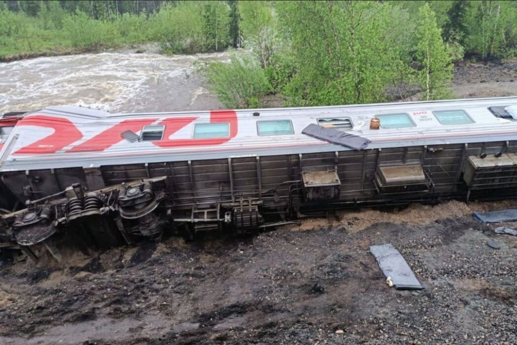 В СЖД назвали предварительную причину аварии — подмыв полотна после обильных осадков. В Коми ввели режим чрезвычайной ситуации в связи с аварией.